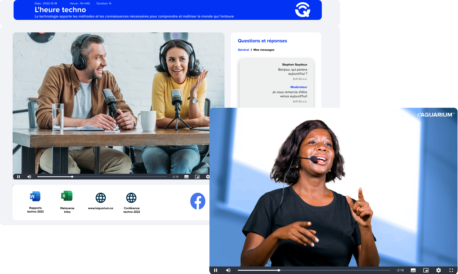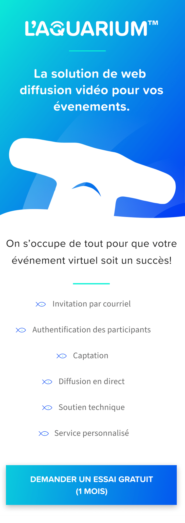 L'Aquarium est la solution parfaite pour votre entreprise. Il couvre tous vos besoins et améliore la qualité de vos rencontres numériques. Il vous permet d'intégrer l'image de votre entreprise. À tous les niveaux, il offre sécurité, facilité de gestion et simplicité d'accès pour des communications plus efficaces et plus agréables.